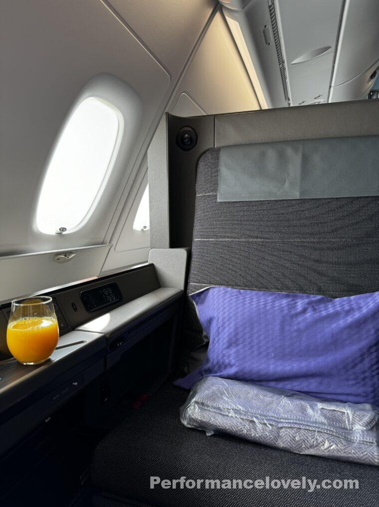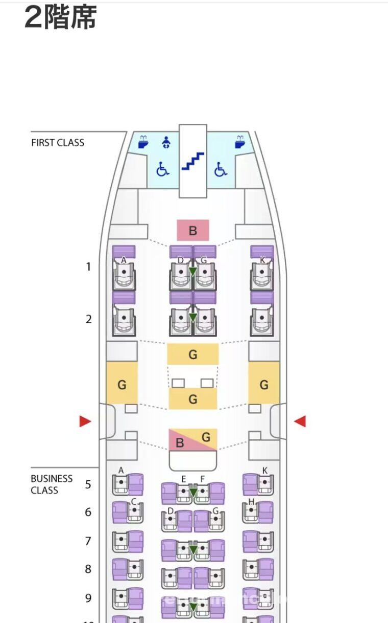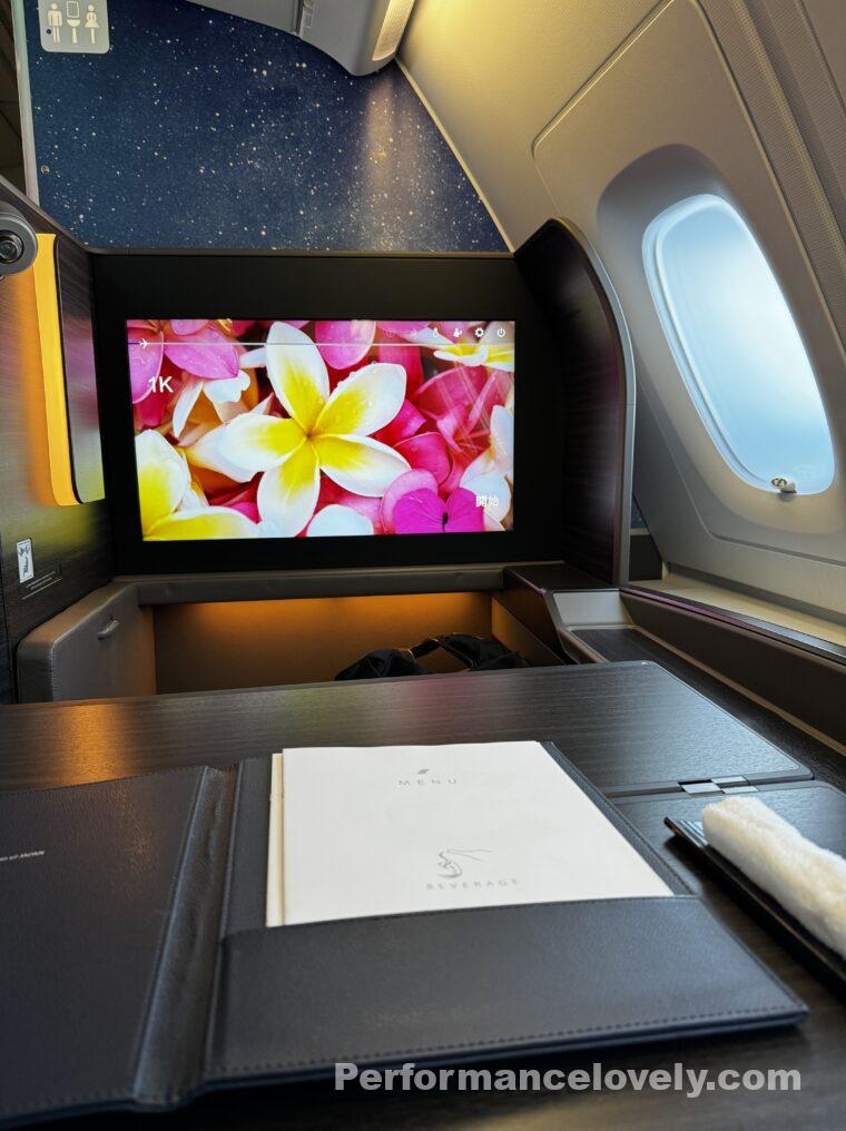 8席しかないファーストクラスですが、おひとりさまでしたらだんぜん窓側の4席がおすすめです。1A、1B、1K、1Hの座席ですね。