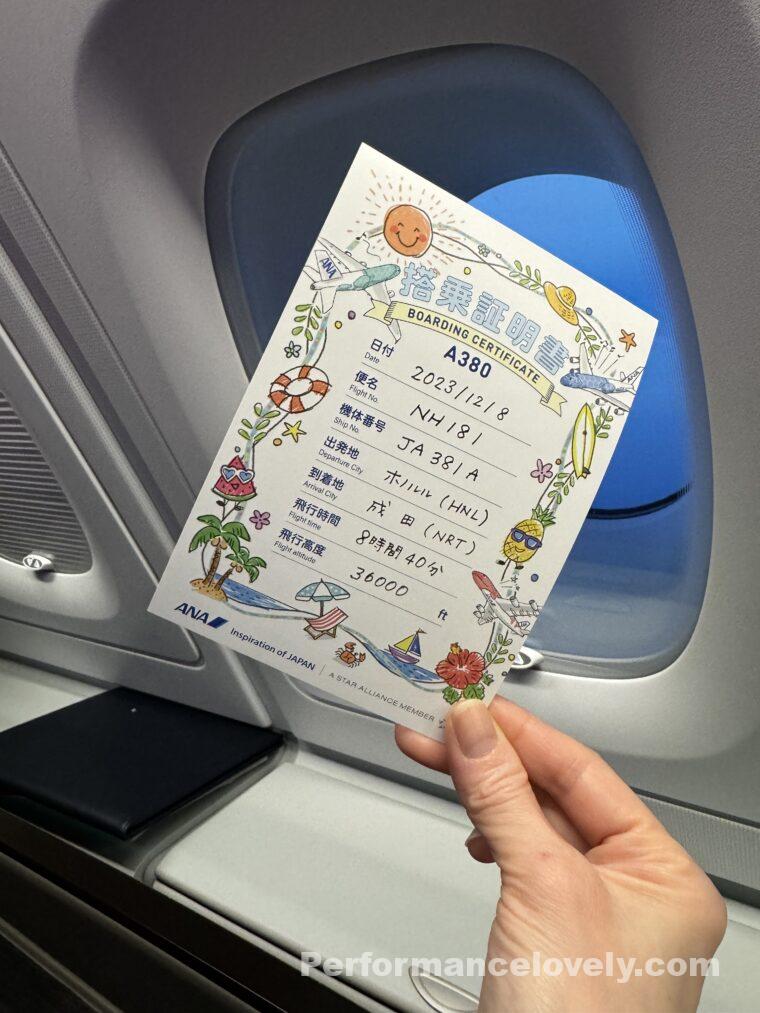 到着前に担当してくださったCAさんから、搭乗証明書もいただきました。