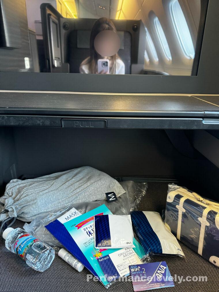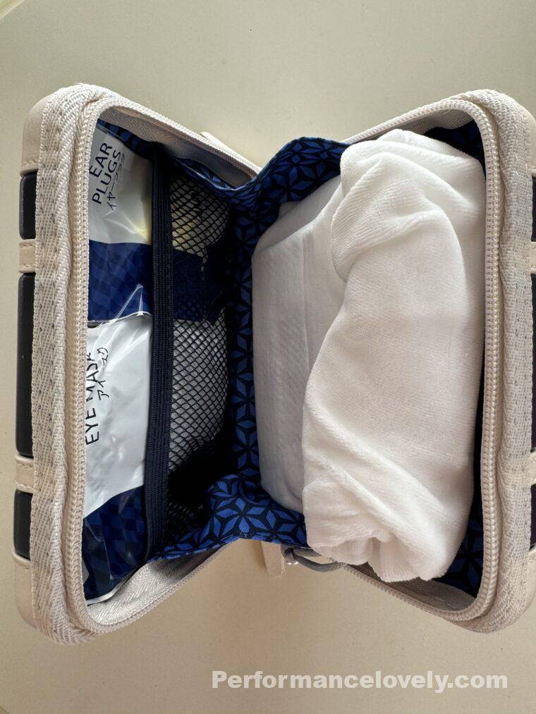 もうひとりの担当CAさんがトレーにアメニティの一式を並べて持ってきてくれました。
