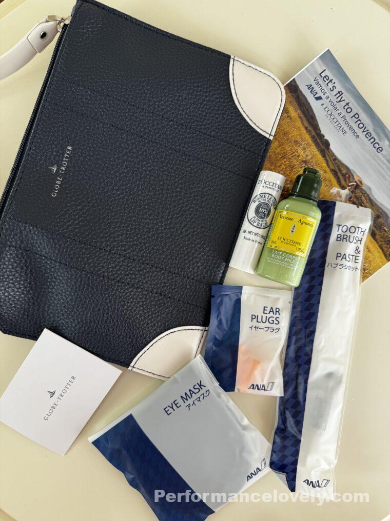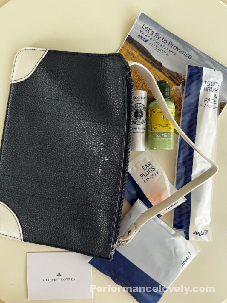 アメニティのボックスはイギリスのトラベルケースブランド Globe Trotter – グローブ・トロッターのANAオリジナルアイテムです。