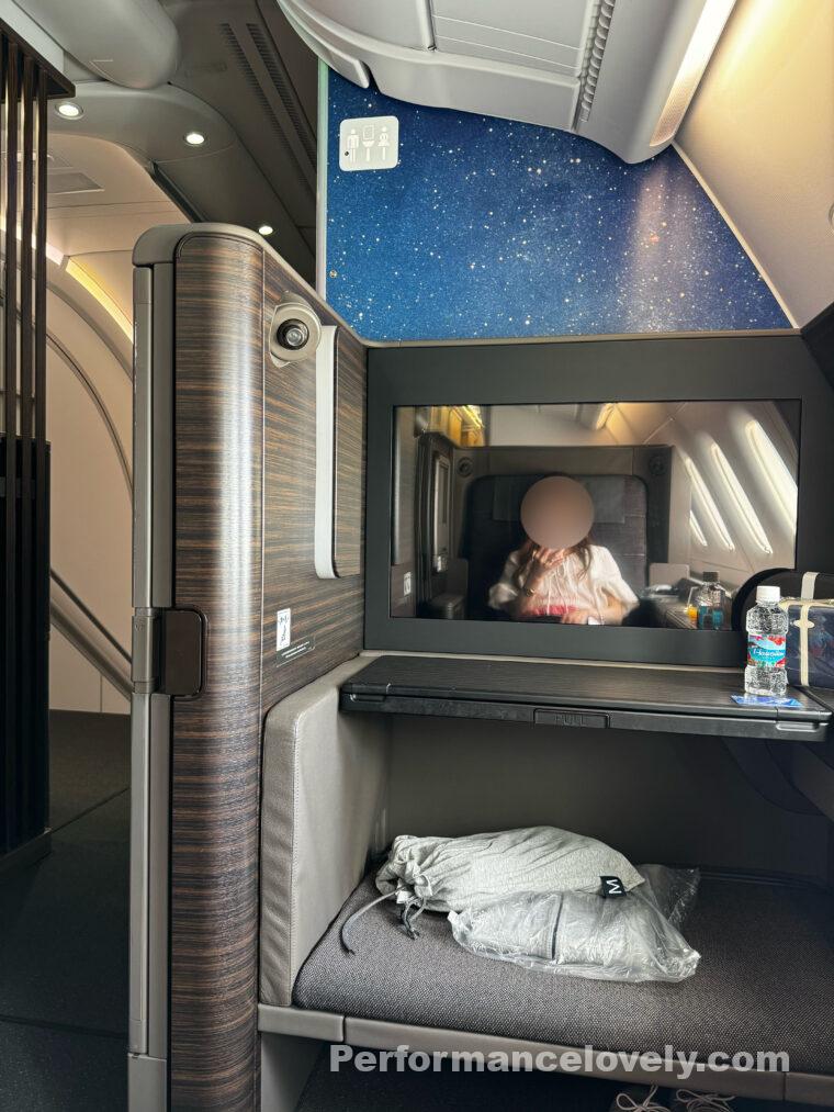 また、もっとファーストクラスを堪能したかったのですが、旅の疲れとふっかふかのベッドの相乗効果でもう映画1本観たら爆睡してしまい、気づいたらもう成田到着まぎわの時間になっていました。