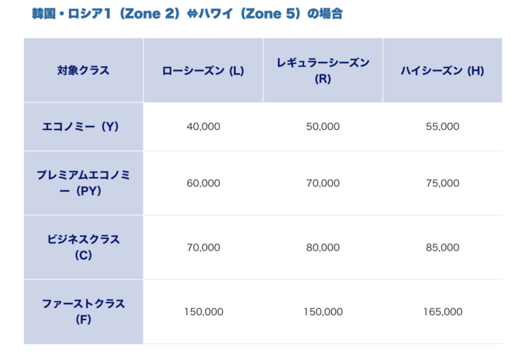 私Cocoはレギュラーシーズンのビジネスクラスとファーストクラスのマイル数の半々ずつなので約12万マイルで利用できたというわけです。