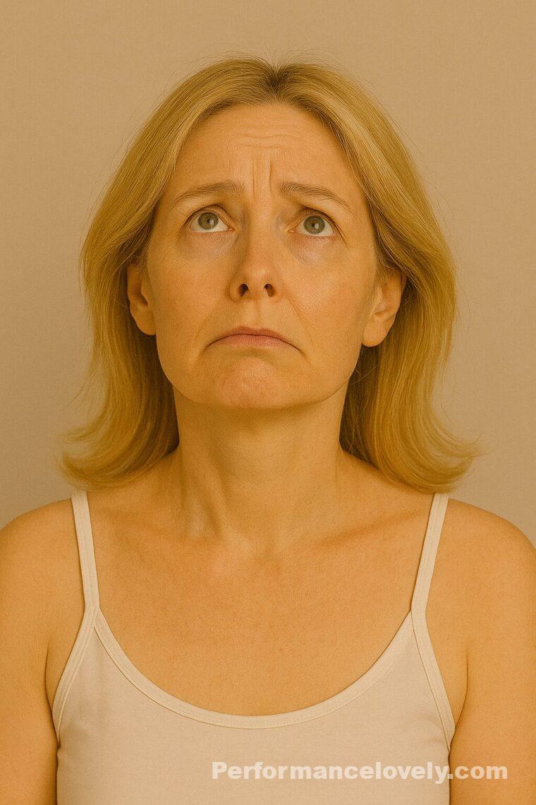 首と顔との色の差や厚みの段差で「隠してます」感が出てしまい、老け見えの原因になるという負のループに。