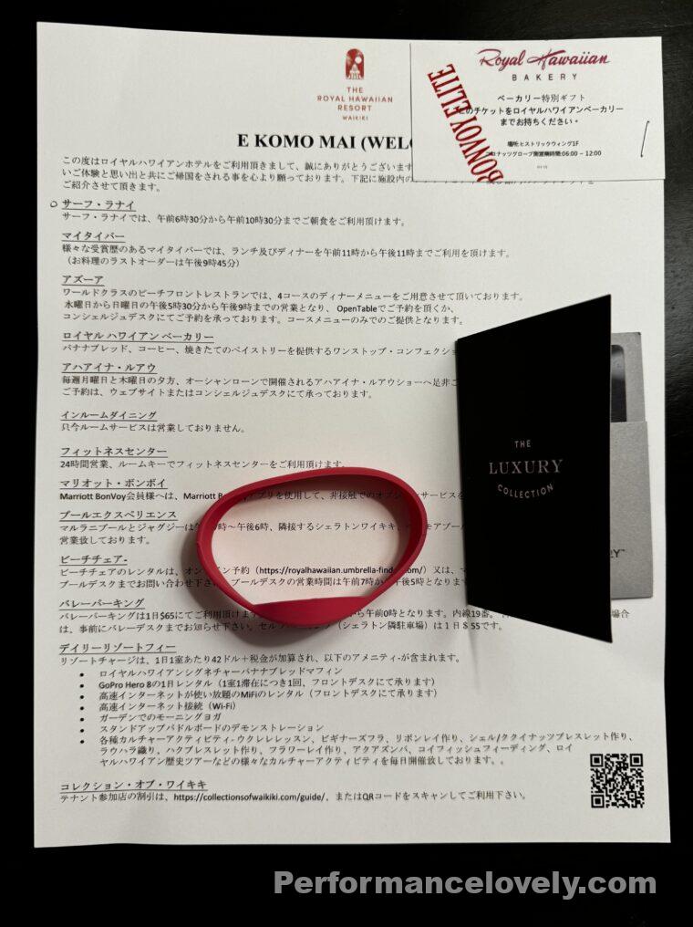 この特典はリゾート料金に含まれる特典です。ロイヤルハワイアンホテルでは1泊につき41ドルのリゾート料金がかかりました。