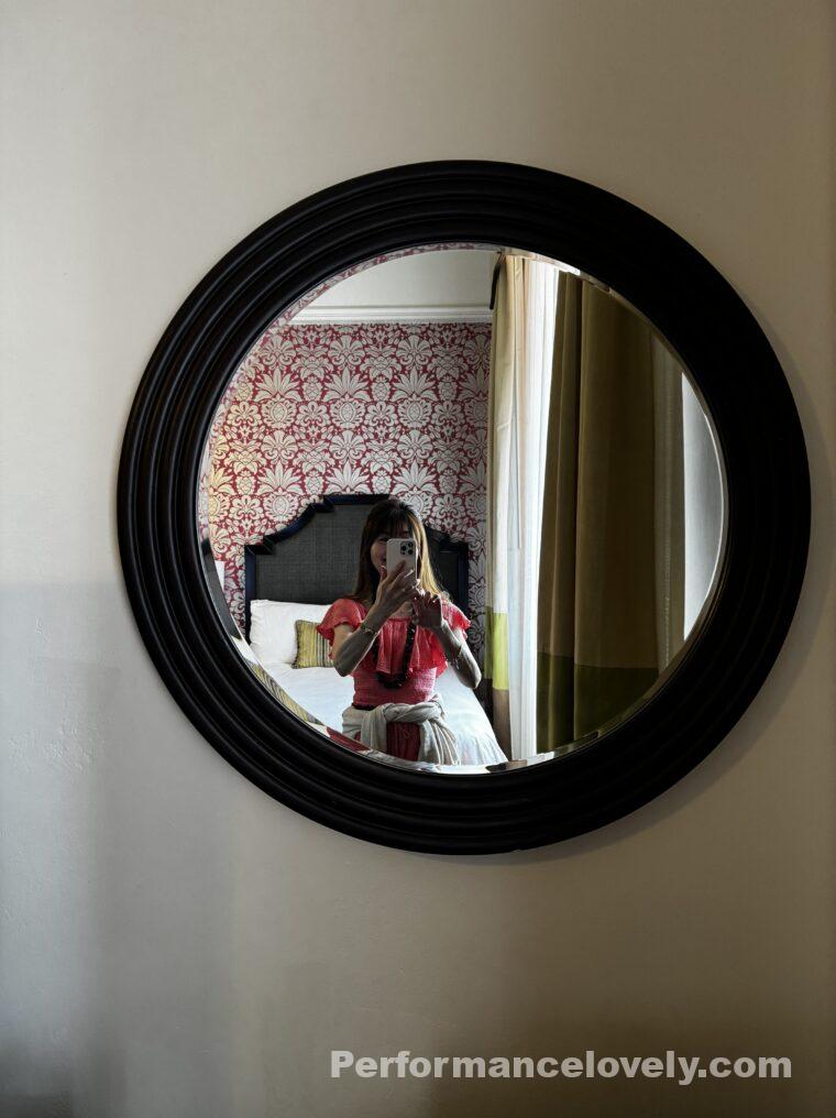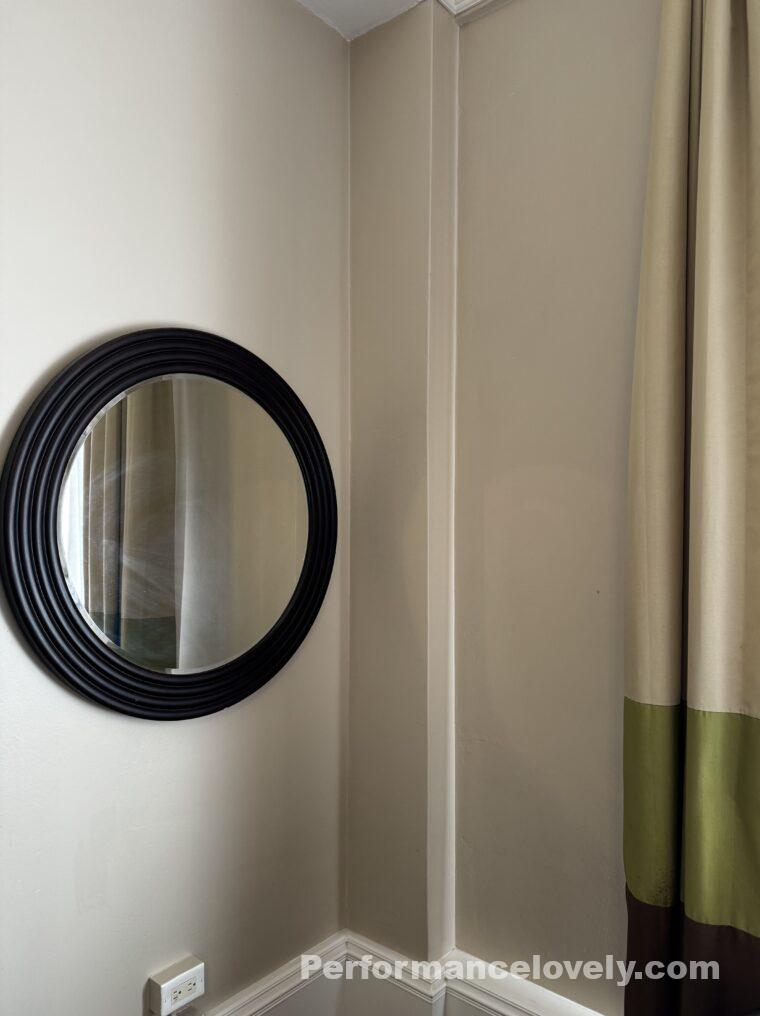 この、壁のまるい鏡もとってもキュートですよね!