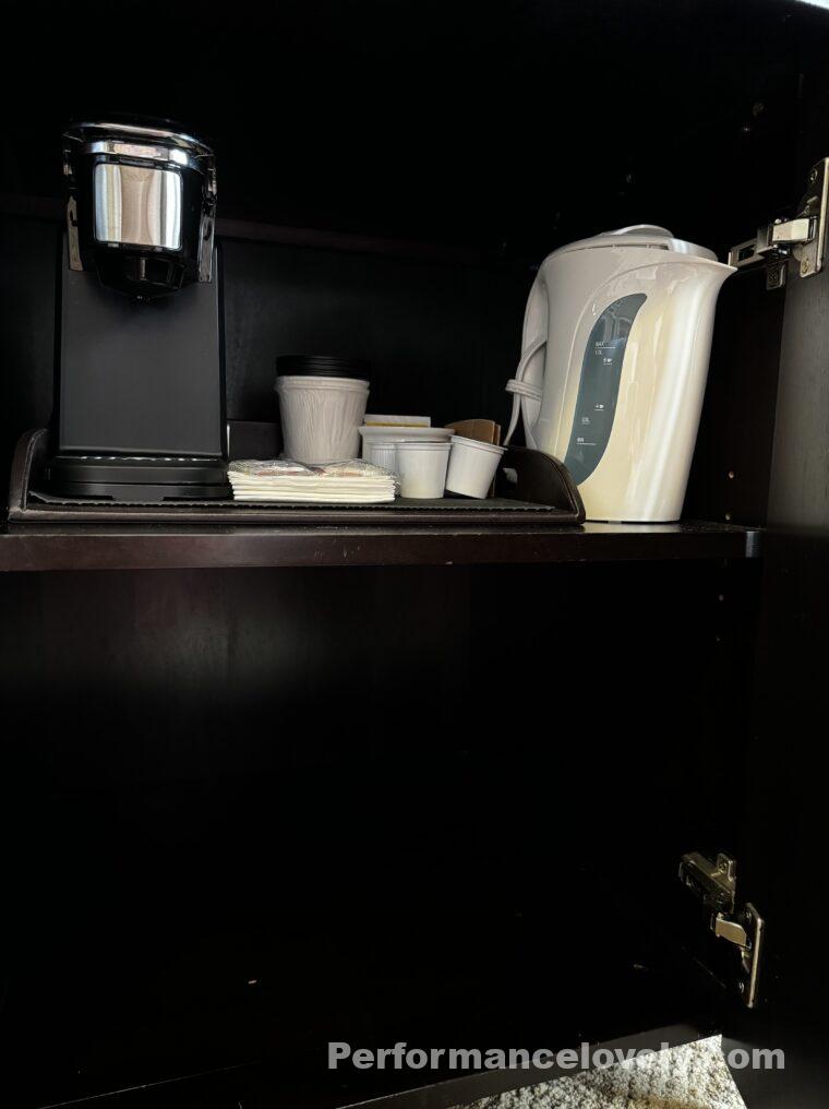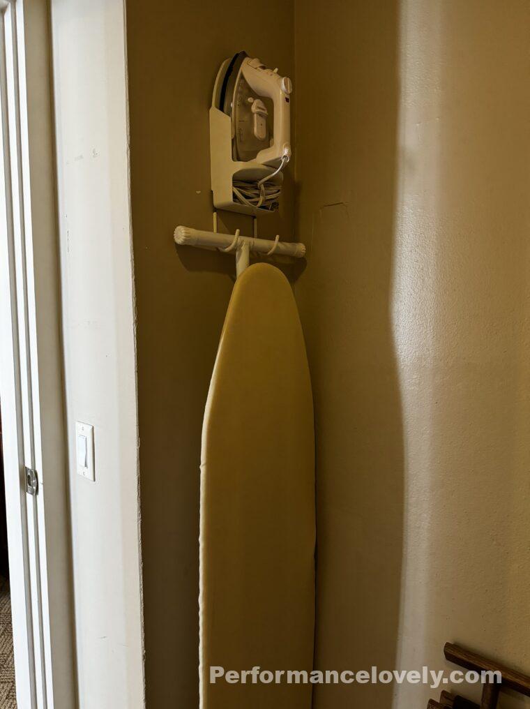 おおきなアイロンとアイロン台もあります。これはアメリカのホテルでは必須アイテムですよね。