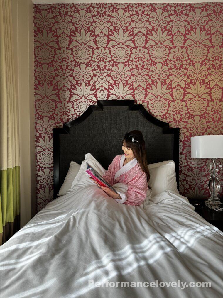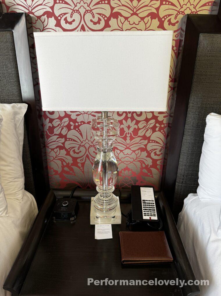 ベッドサイドのランプもとてもすてきですよね。自宅にほしいわ!
