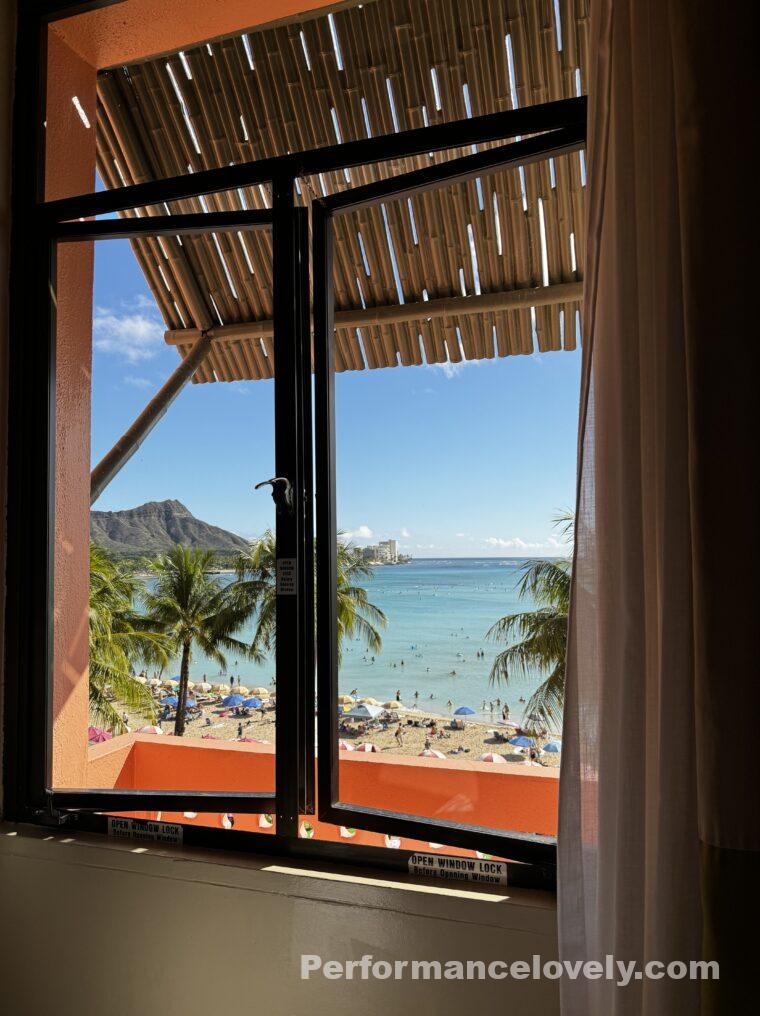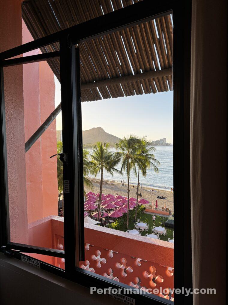 オシャンビューがほとんどない、かつラナイ(ベランダ)もないという本館ヒストリックウイングのお部屋なのですが。(出窓はあります!)