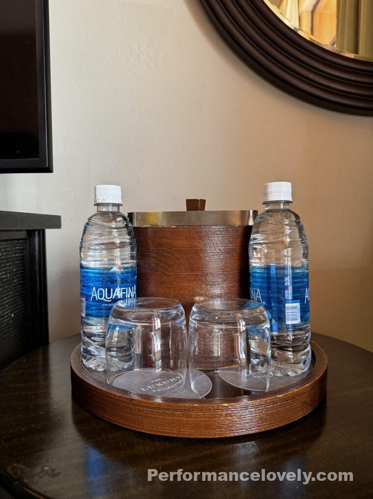 丸テーブルの上には、氷のアイスボックスと無料のミネラルウォーターがありました。