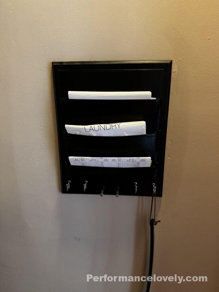 クローゼットルームの壁にクリーニングのセットが用意されています。