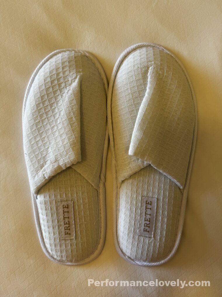 こちらのスリッパはバスローブと同じイタリアのブランド、 Frette – フレッテのものです。