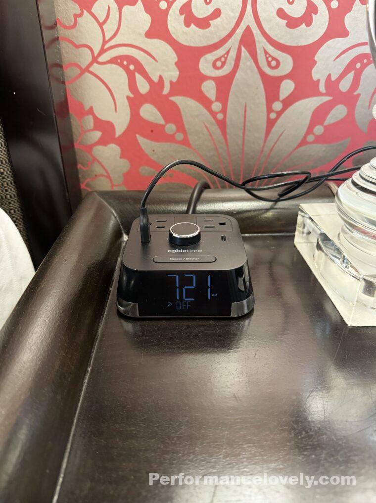それからこちらの充電ポートについている時刻表示なのですが、ひかりの強度を変えられるみたいで。最初は薄めになっていて時刻の表示が見えにくかったのです。