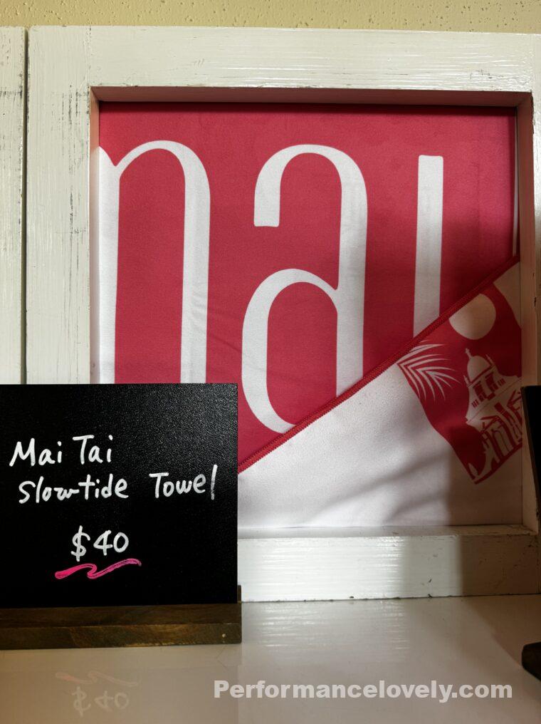 「MAI TAI – マイタイ」のロゴが入ったスロータイドタオルは白とピンクの2色あります。