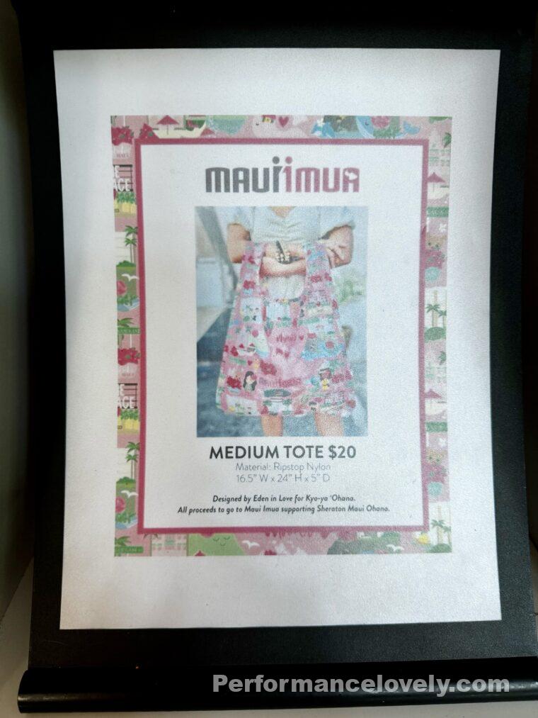 こちらのトートバッグは、マウイ島火災により被害を受けた、マリオットボンヴォイ系列の姉妹であるホテル「シェラトン・マウイ・リゾート&スパ」の従業員支援を目的とした限定グッズなのです。