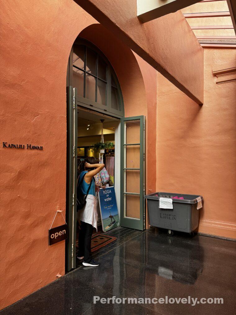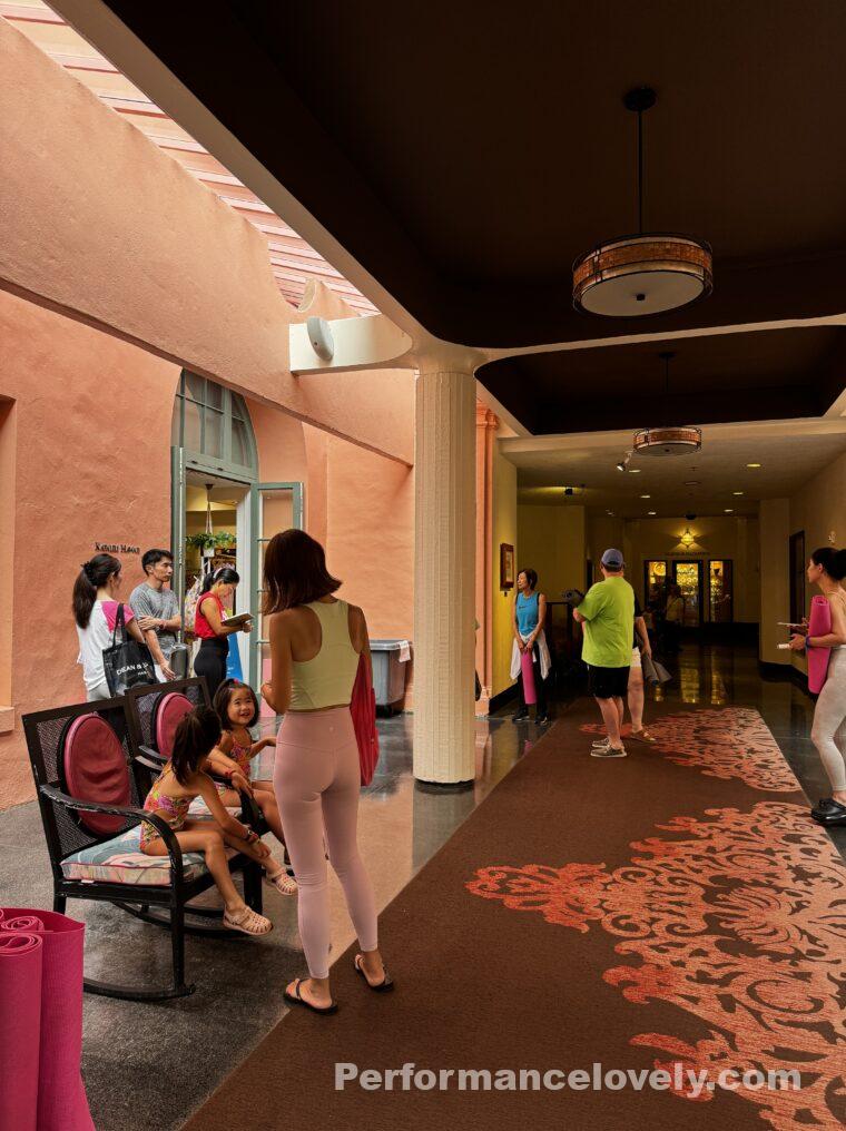 ヨガクラスの集合場所は、ロイヤルハワイアンのなかにあるヨガショップの前です。