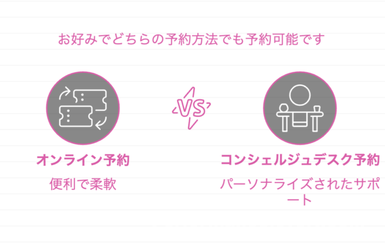 こちらで対面で直接予約してもらうのもありですね。合わせて空き状況も調べてもらえるのでとても便利です。