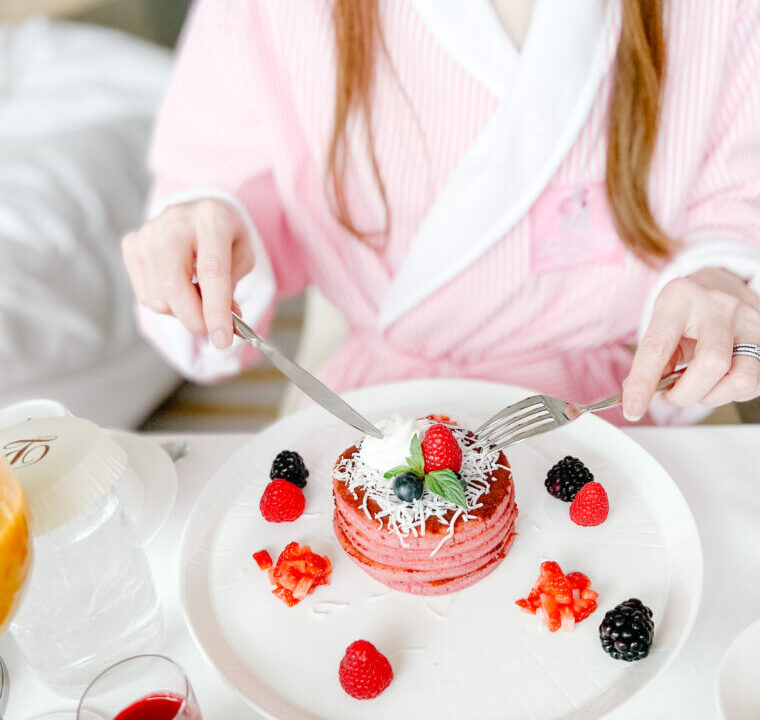 こちらのプランでは、ピンクパレスパンケーキの朝食を、インルームダイニングでいただくことができます。