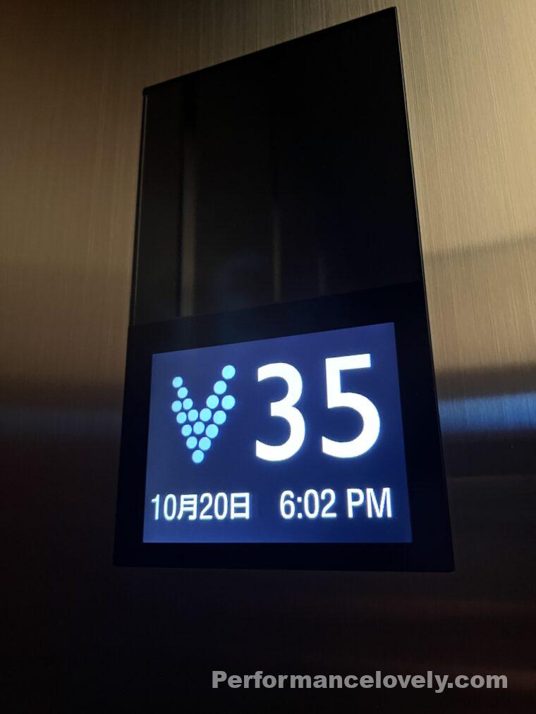 フロントがある36階がホテルの最上階です。今回のお部屋は35階でしたので、エレベーターで35階にひとフロア下がります。