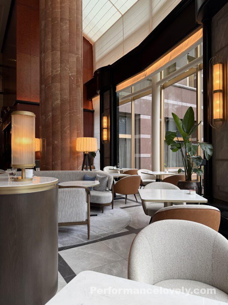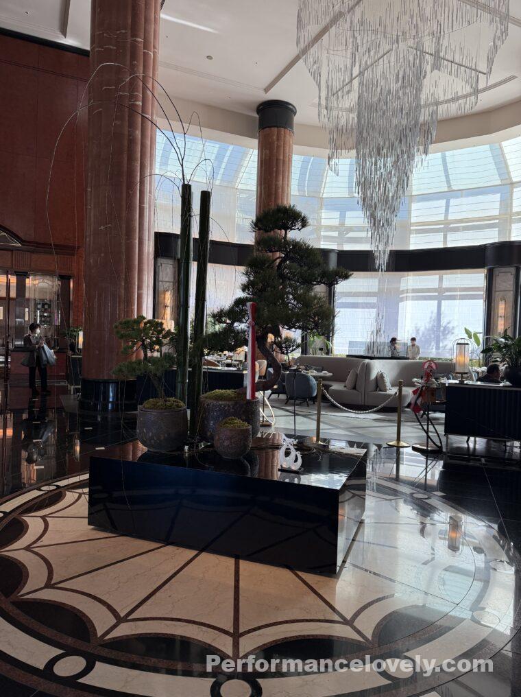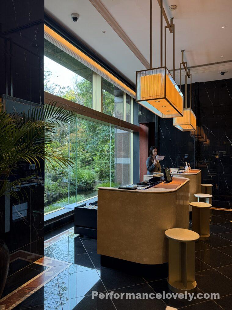 エントランスを入って、正面にはロビーラウンジにある「ザ・ラウンジ」やペストリーブティックが広がっていて、その右奥にレセプションがあります。