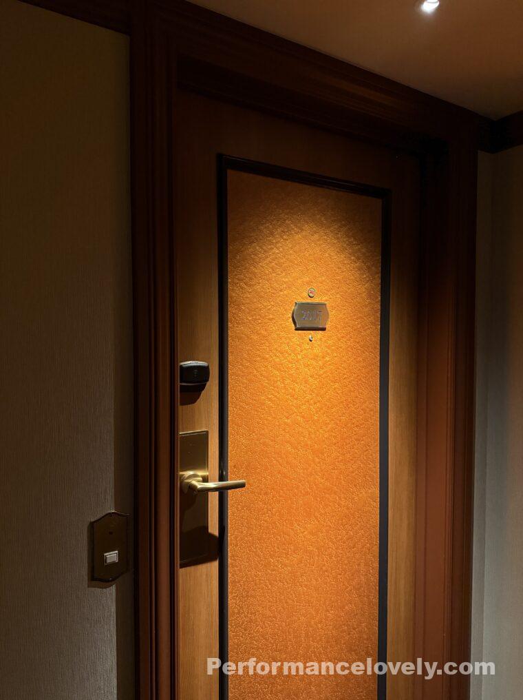 お部屋のドアのライトアップがまたいちいちすてきですよね。ほんのり部屋番号が見える感じに調整されているのでしょうね。