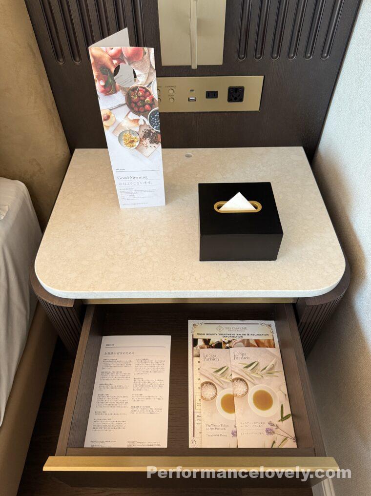 引き出しの中にはスパやインルームマッサージの案内が入っていました。