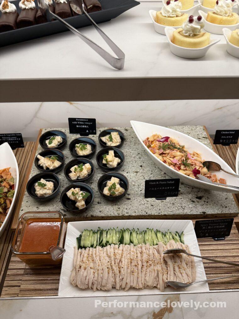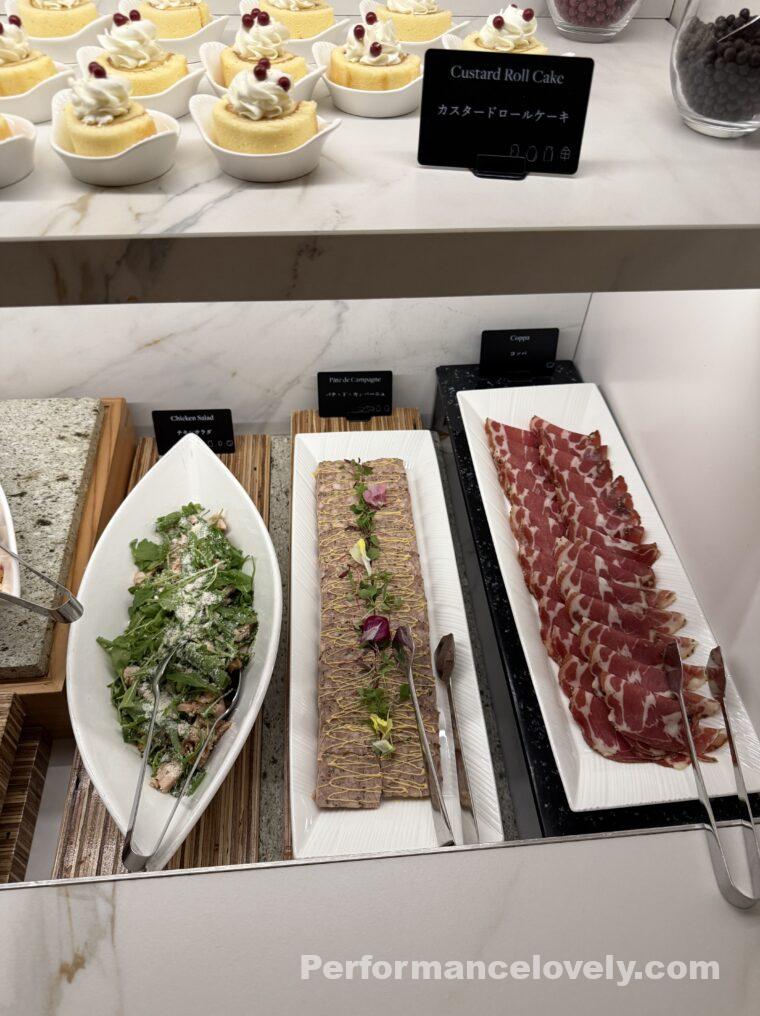 アフタヌーンティーサービスではデザートが置いてあったコーナーにはコールドミールも用意されていました。