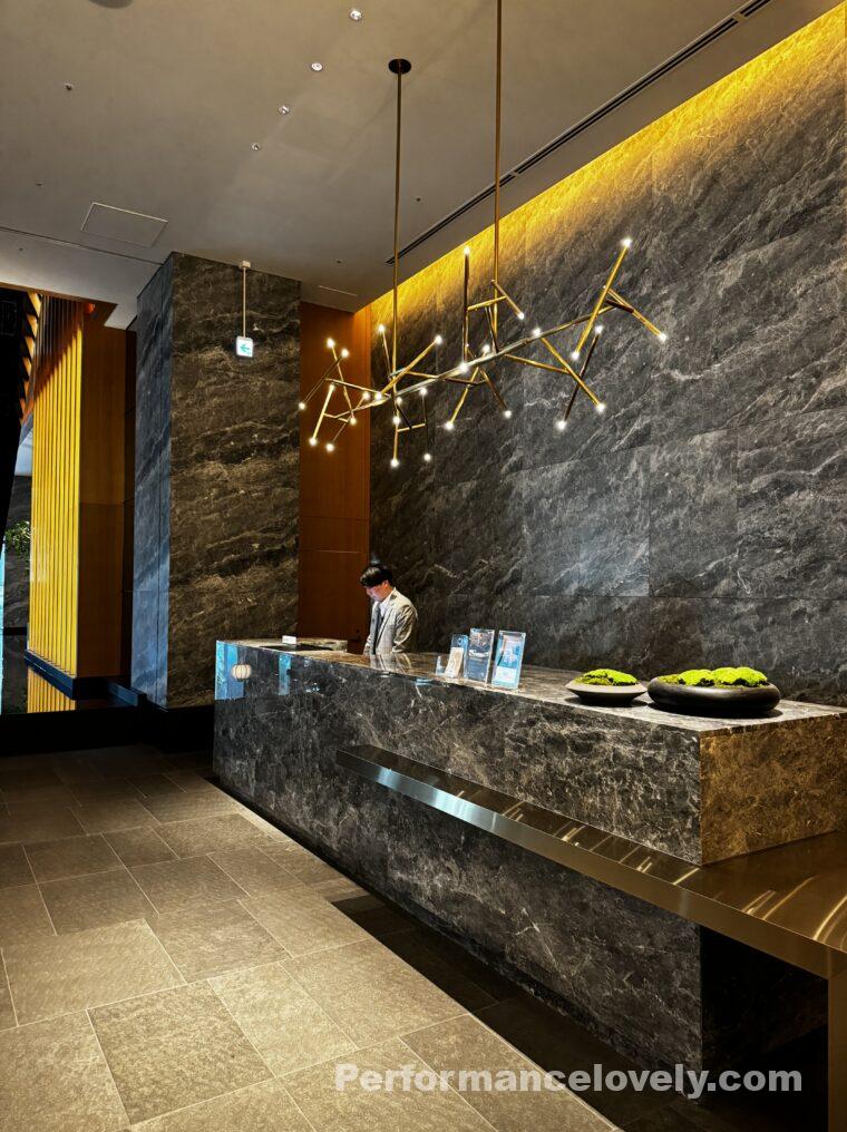 ホテルのエントランスから中に入ると、外国籍の男性スタッフさんと日本人の女性スタッフの2名でお出迎えしてくださりました。なんか緊張(笑