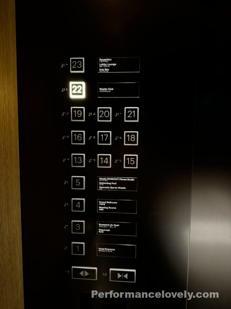 名前を聞かれて答えると、リストと照らし合わせて確認。その後、そのままクラブラウンジがある22階へと案内されました。