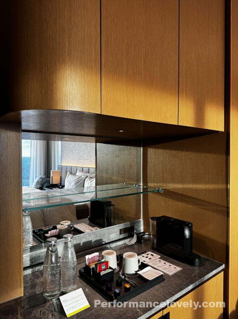写真のバスローブがかけてある壁の背面がミニバーコーナーになっています。