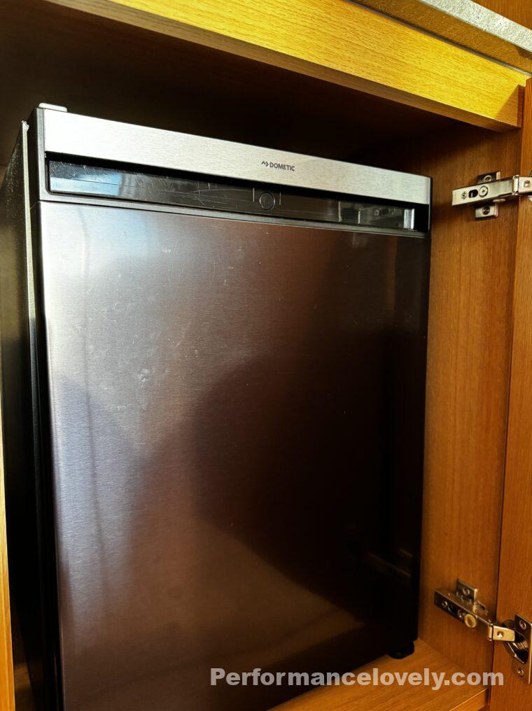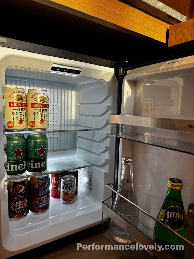 冷蔵庫はミニバーコーナー下の扉のなかにあります。