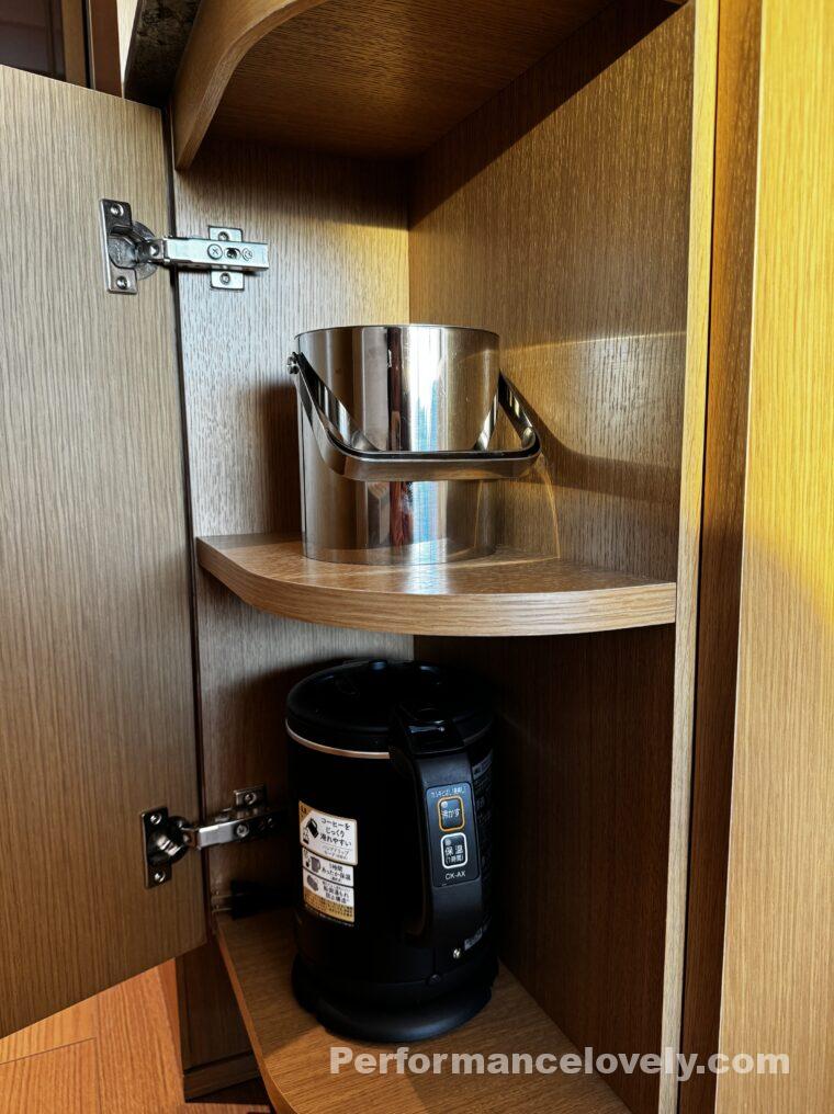 使いませんでしたが、湯沸かしポットとアイスボックスもあります。