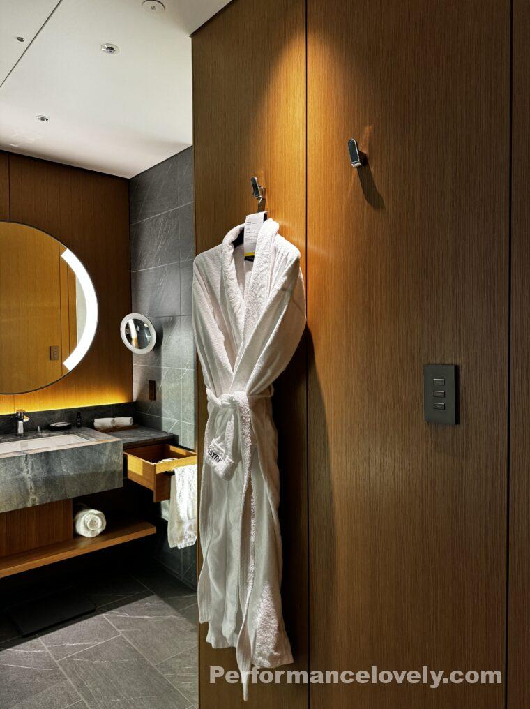 バスローブもこちらに収納されているものと、バスルームにかけられているものとふたつあります。