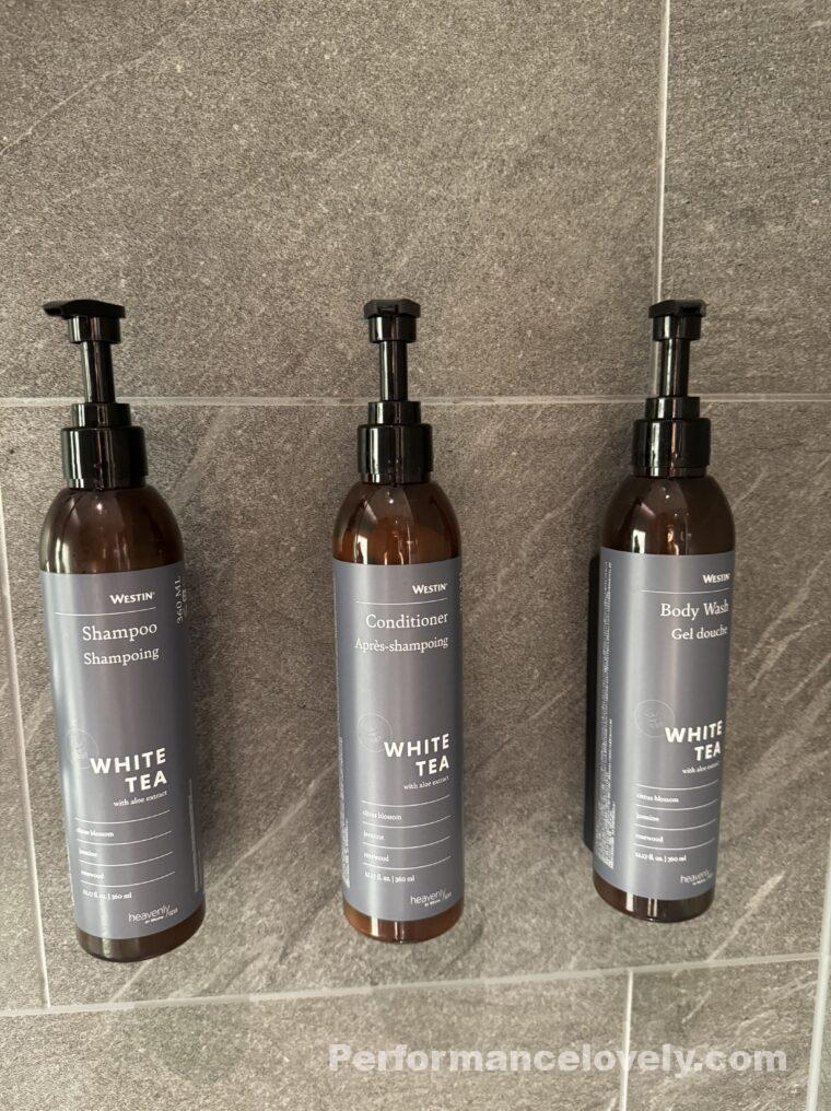 アメニティはウェスティンおなじみの、Westin Heavenlyバスのホワイトティーアロエバスアメニティです。