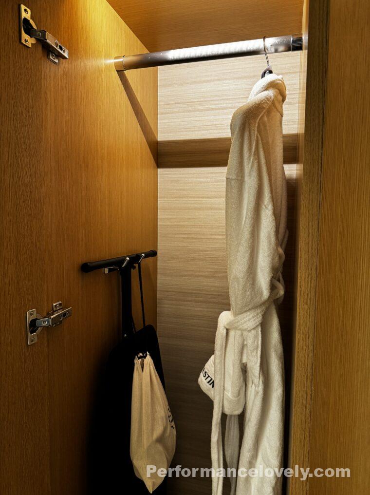 バスローブはバスルームとクローゼットのなかにもあります。おふたりぶん用意されていますのでご安心くださいね。
