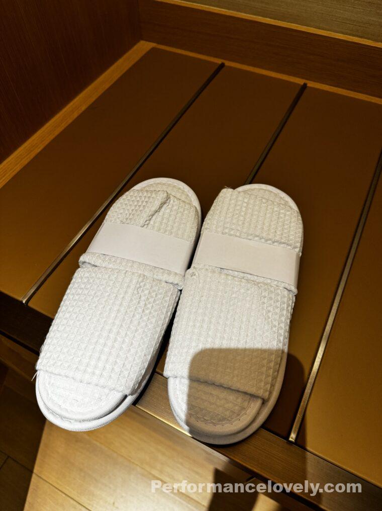 使い捨てのスリッパもメインのクローゼットにあります。ワッフル素材というのでしょうか?かなりしっかりした素材でした。
