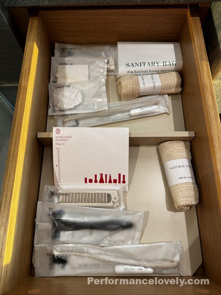 メインのクローゼットの引き出しのなかに寝具がはいっています。ランドリーサービスのセットもあります。