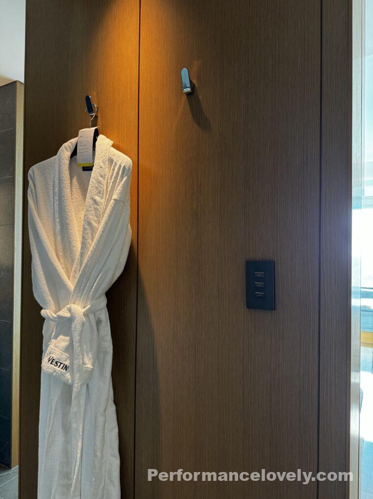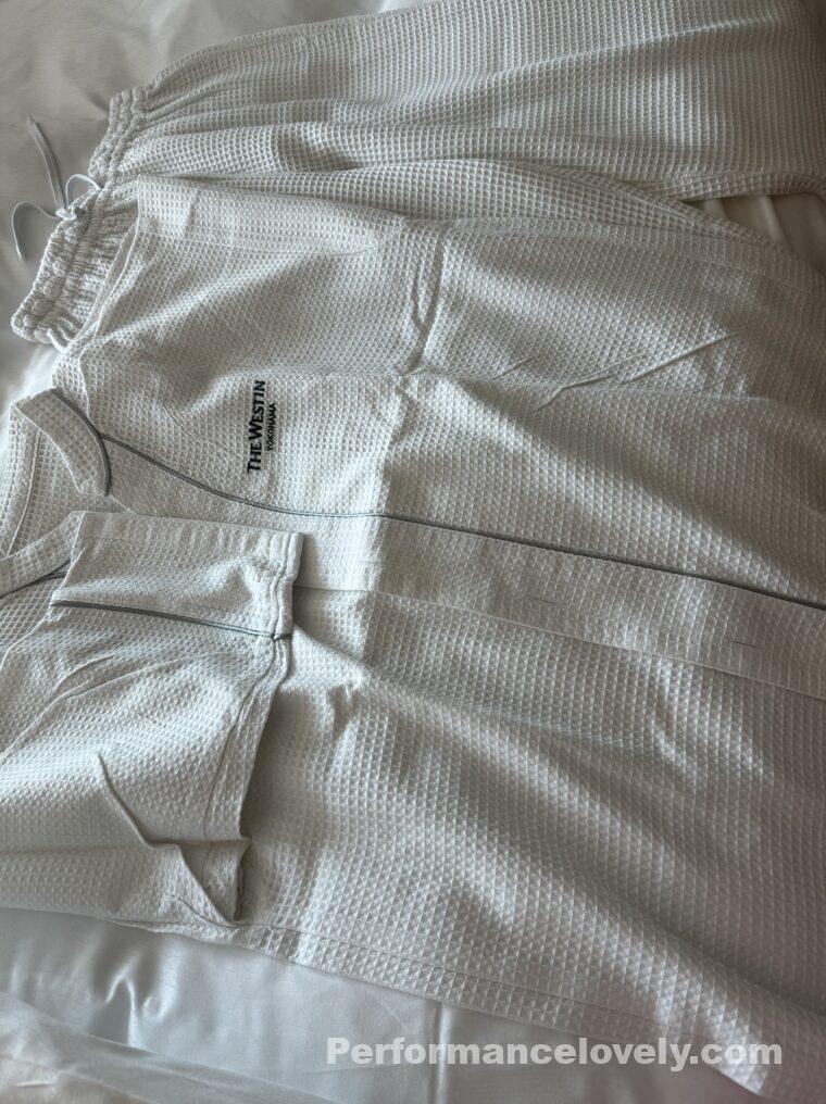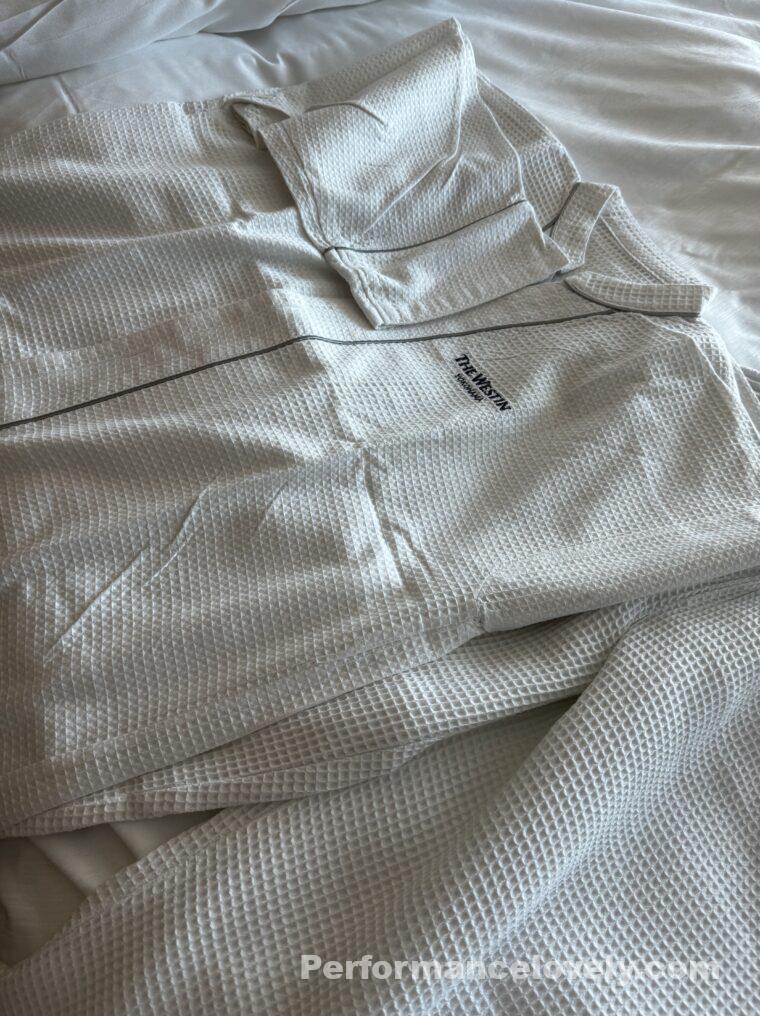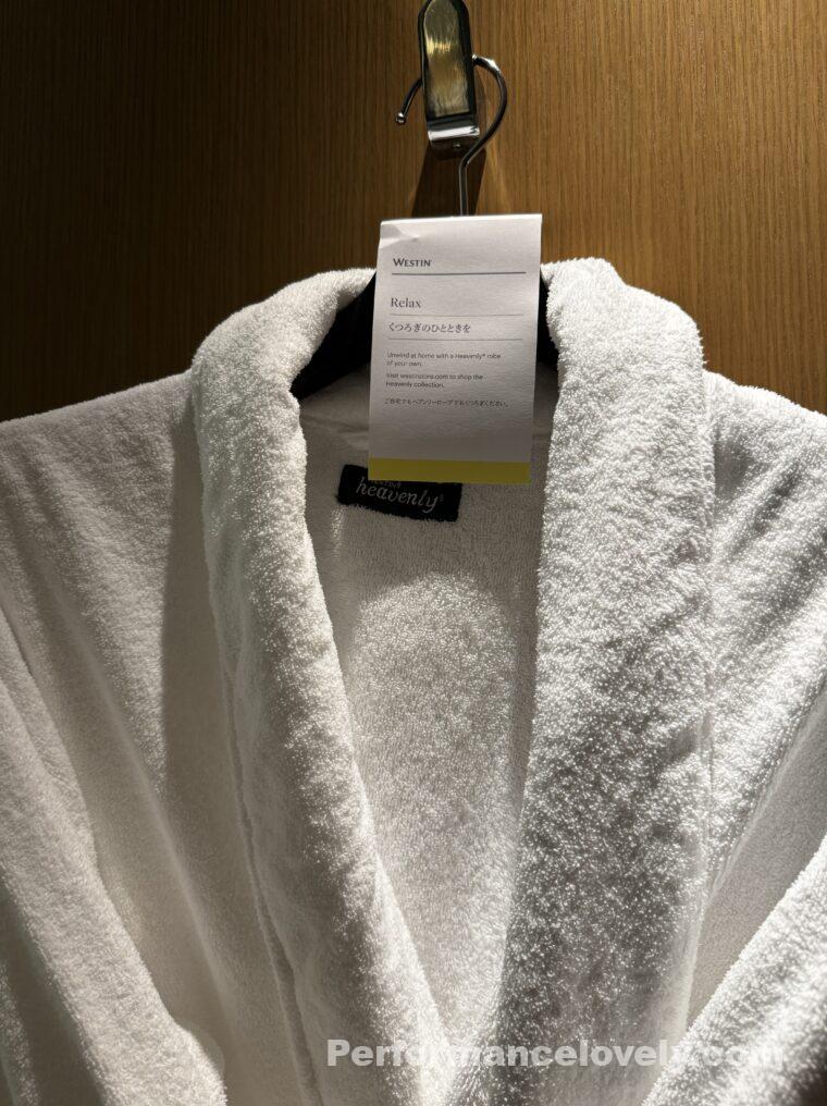 オリジナルのバスローブは袖にウェスティンのロゴが入っています。肌触りもよかったですよ。