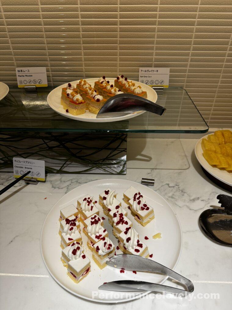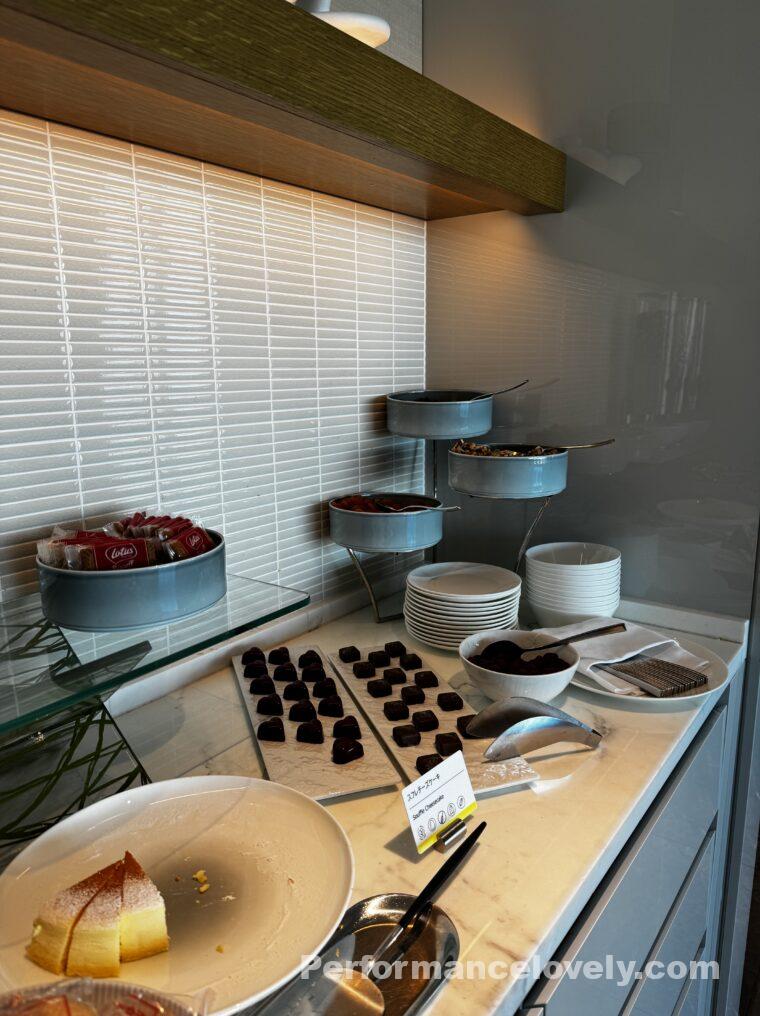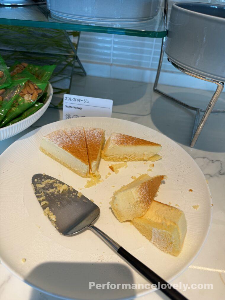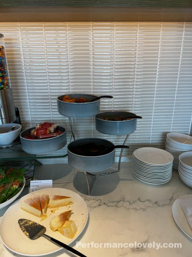 こちらの一角にのみフード類は集約されています。スフレチーズケーキがあったのがうれしかったです。スナック類は日によって変わります。