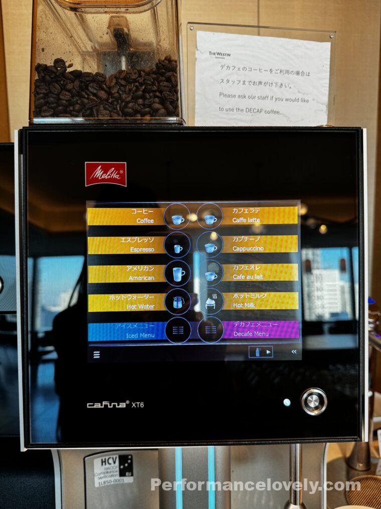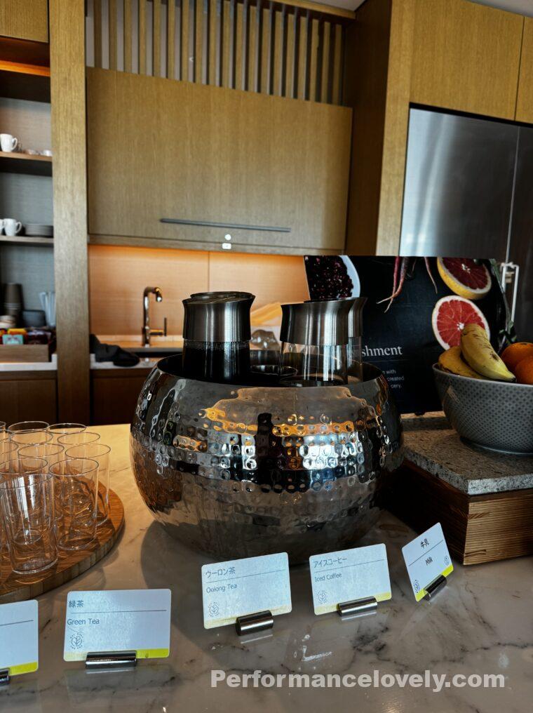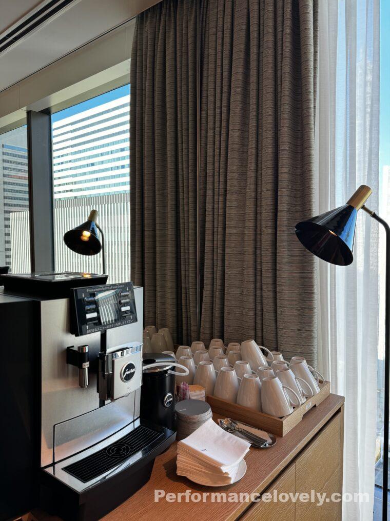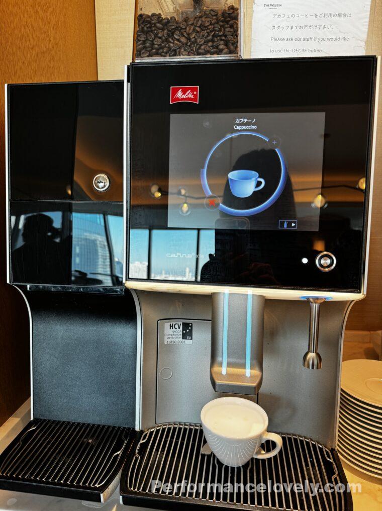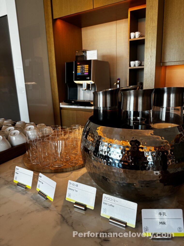 ラウンジの中央部分にもコーヒーメーカーがあります。コーヒーメーカーはラウンジ内に2か所に置いてありました。