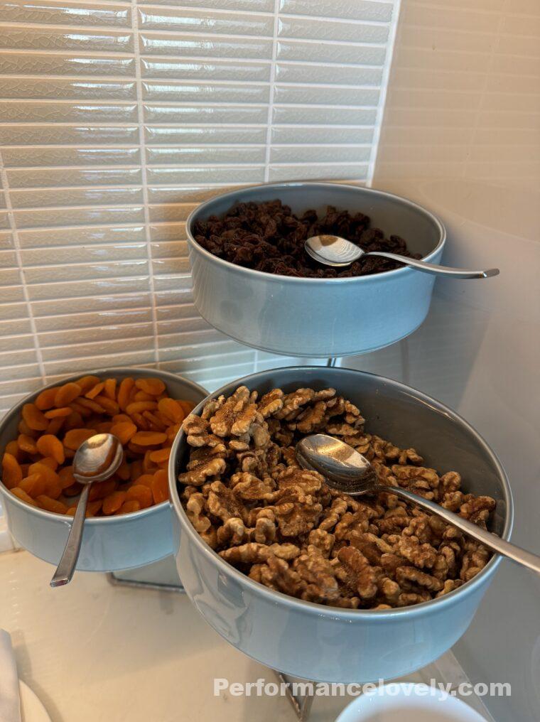 ドライフルーツのアプリコット、レーズン、そしてくるみはデイスナックタイムと同じですね。