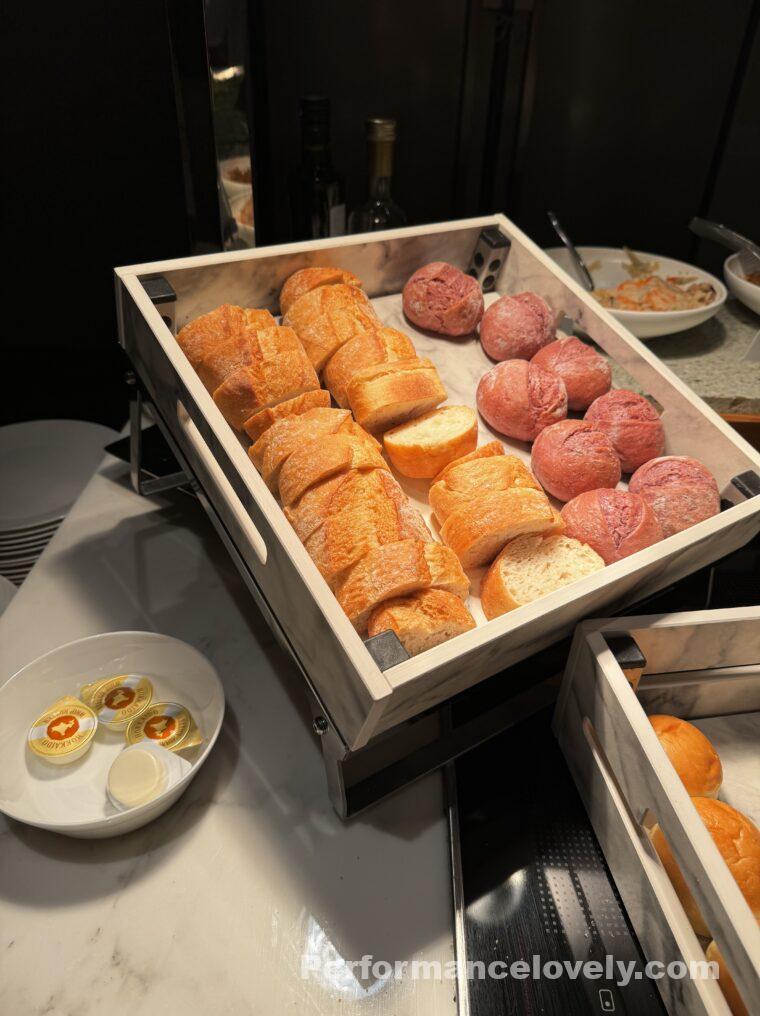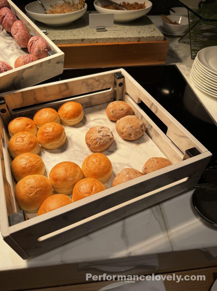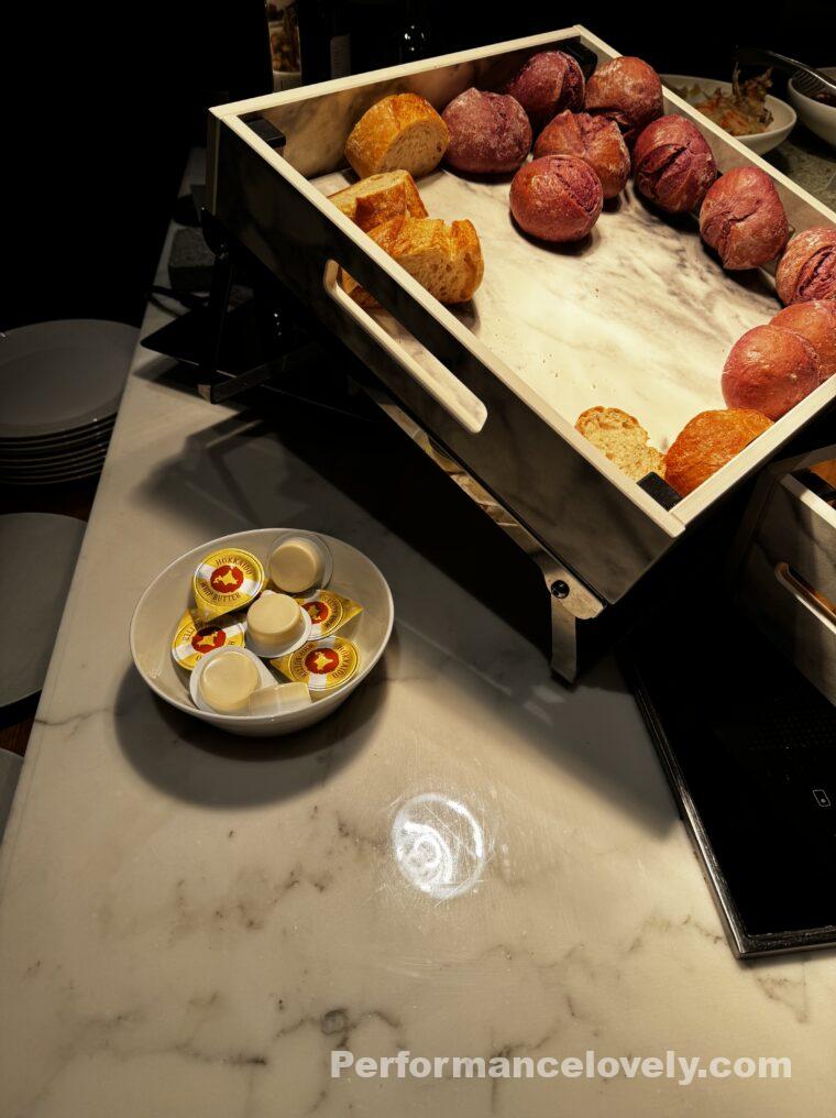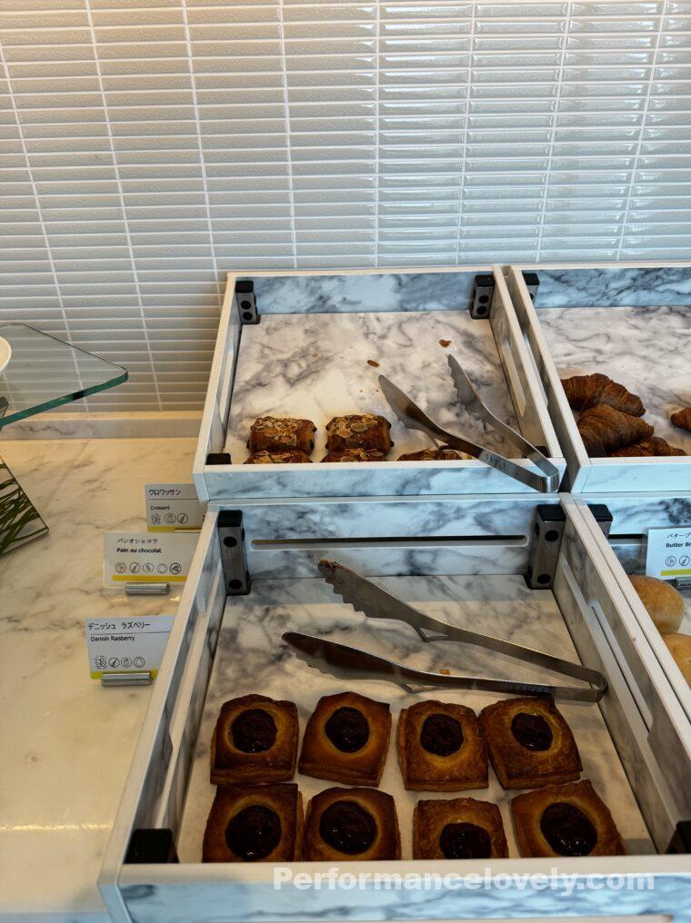 朝食タイムには、クラブラウンジのいちばん奥のスペースが開放されていて、パン類とサラダが提供されていました。
