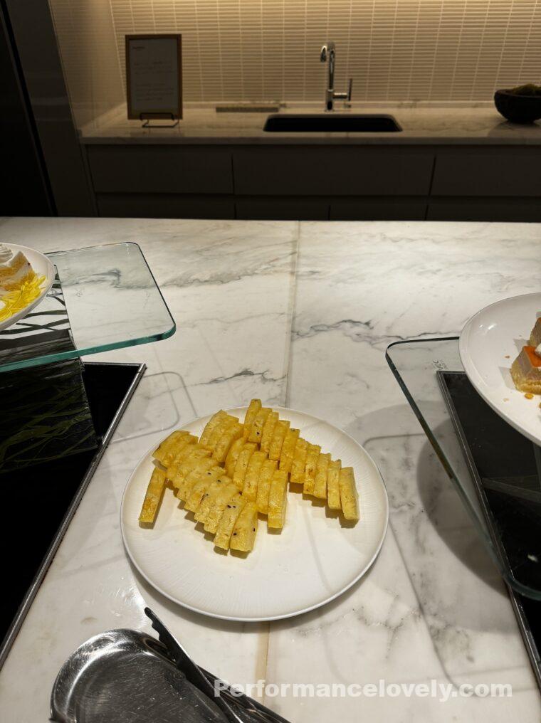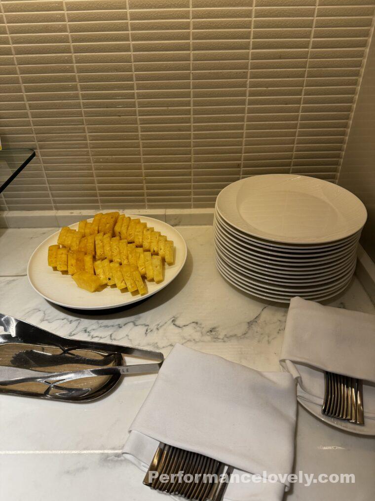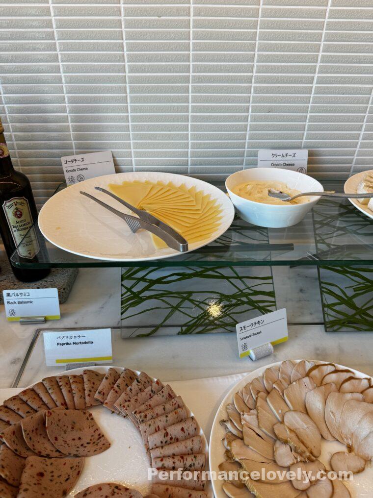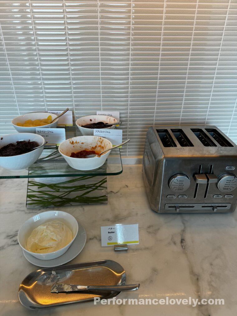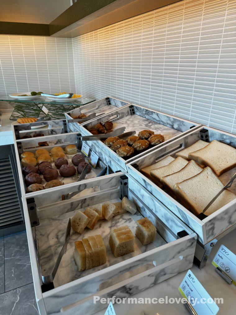 朝食タイムには、クラブラウンジのいちばん奥のスペースが開放されていて、パン類とサラダが提供されていました。