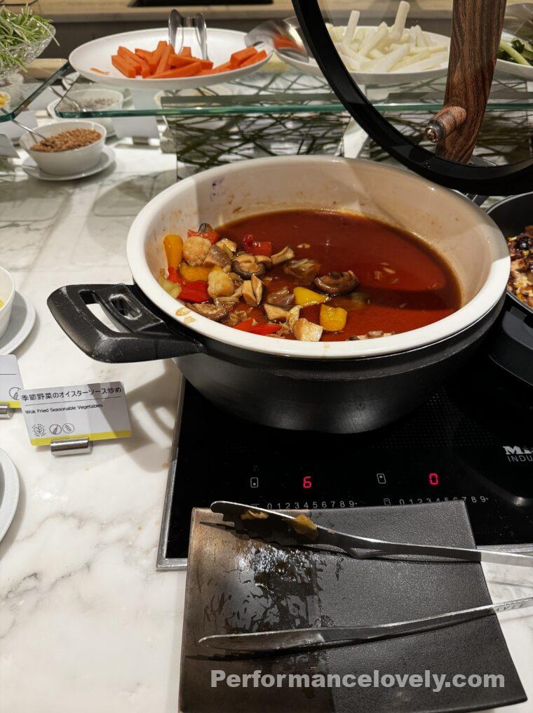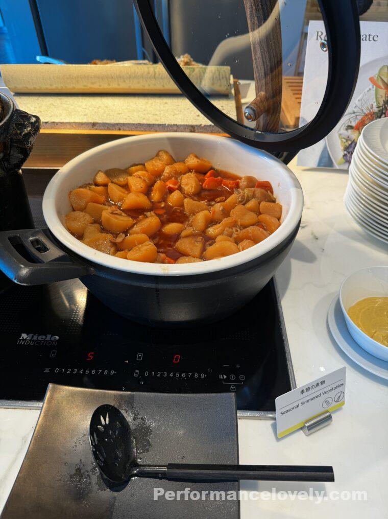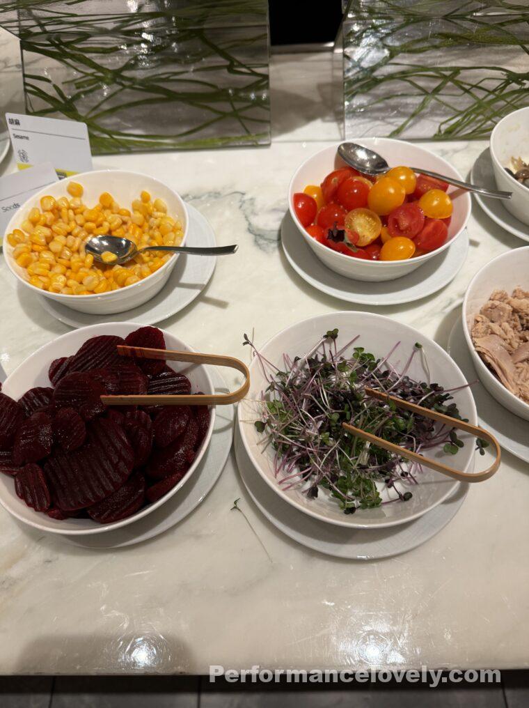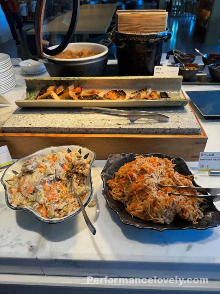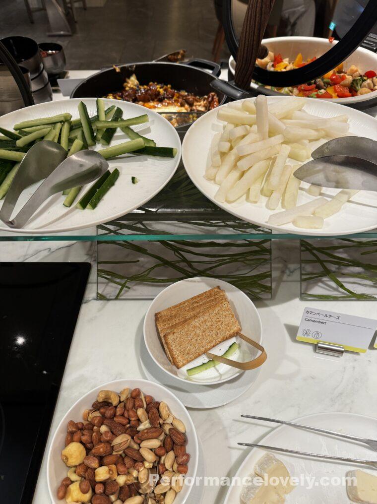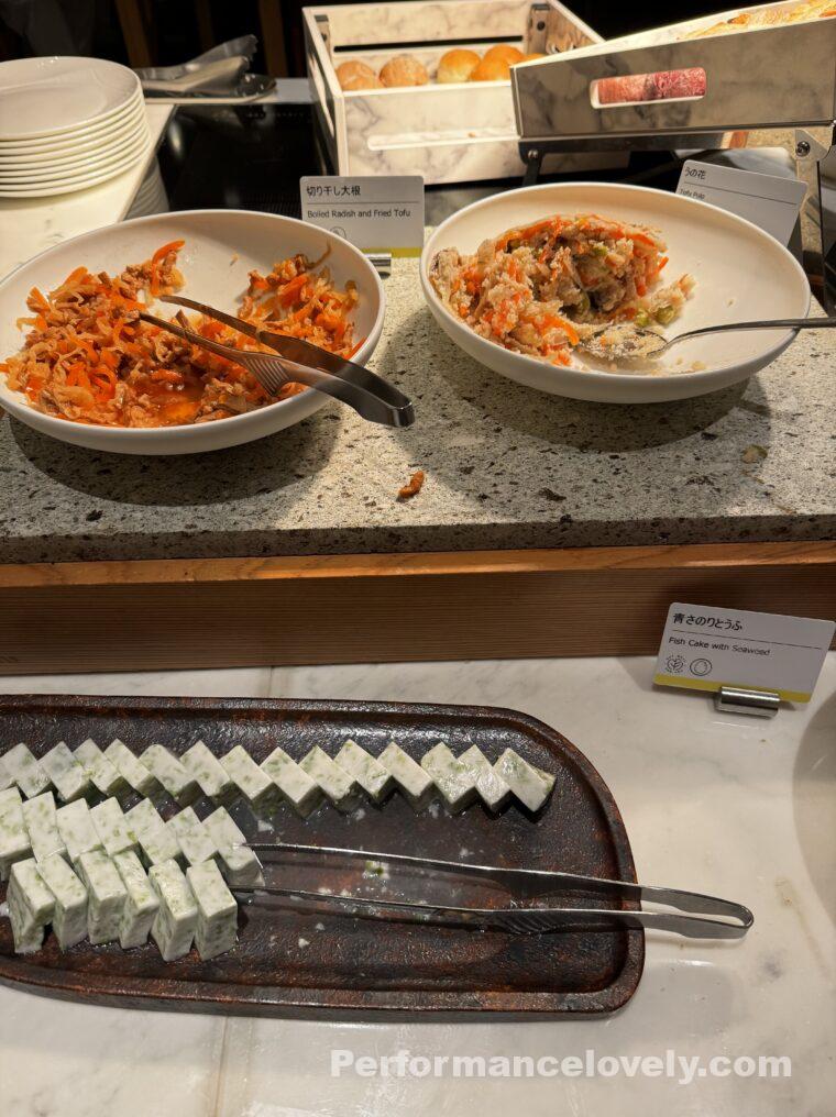 グリーンサラダ類はほぼカクテルタイムと同じでした。水菜、ロメインレタス、紫キャベツ、ミニトマトです。スライスされた大根もあります。