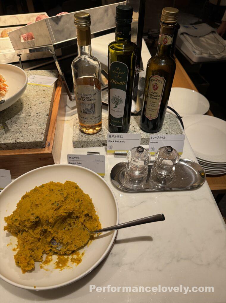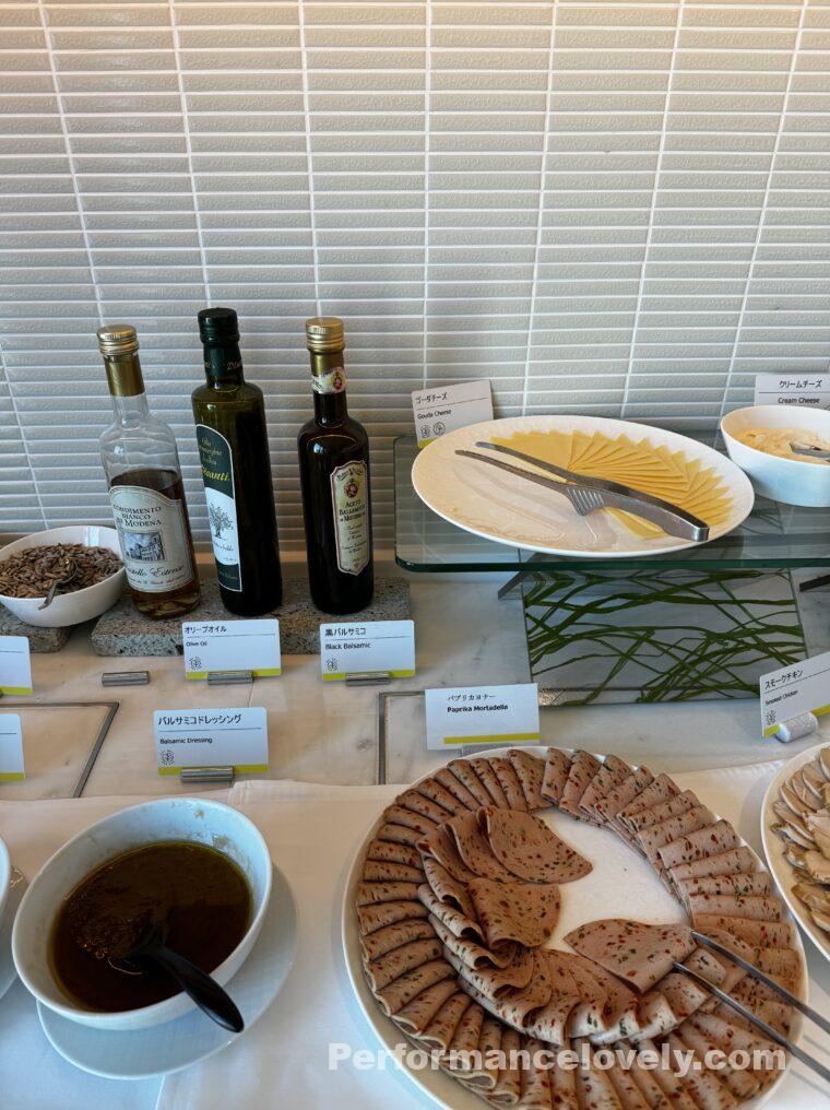 ボトルのオリーブオイルや黒バルサミコもありますね。オリーブオイルは2種類用意されています。