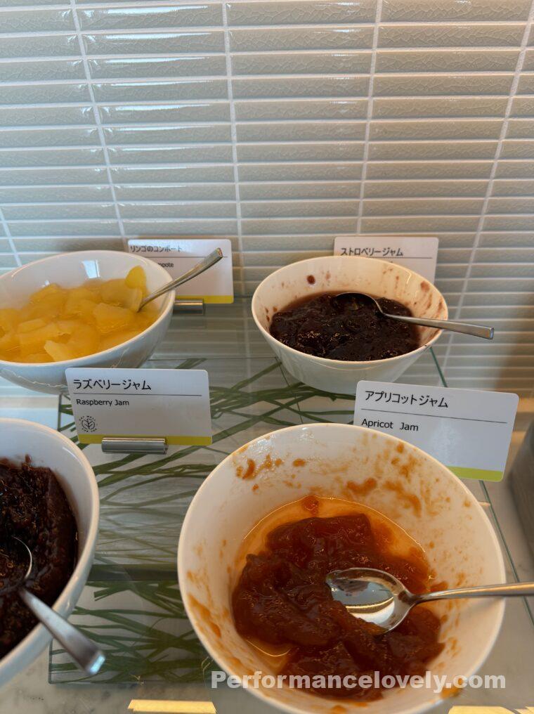ジャムは4種類ありました。ラズベリージャム、アプリコットジャム、ストロベリージャム、りんごのコンポートです。