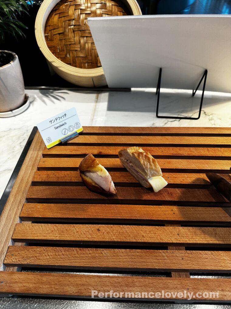 小さめにカットされた、バゲットのサンドイッチもあります。中身はハムとチーズです。